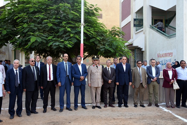 محافظ الشرقية بين التلاميذ في طابور الصباح بمدرسة السادات الثانوية العسكرية بديرب نجم
