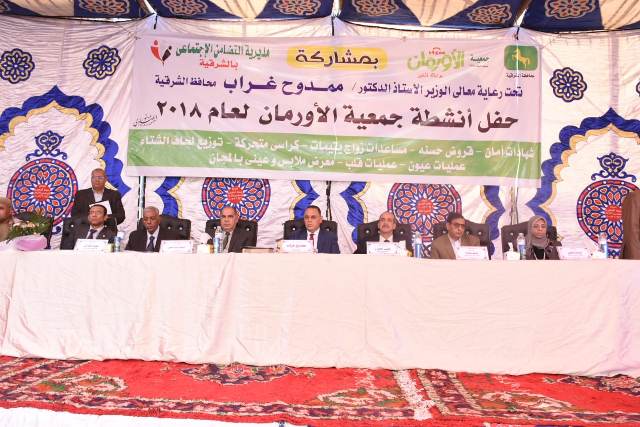 محافظ الشرقية يُشارك إحتفالية مديرية التضامن الإجتماعي بالتعاون مع جمعية الأورمان لتوزيع شهادات أمان وقروض حسنه بقرية بني حسن بأولاد صقر