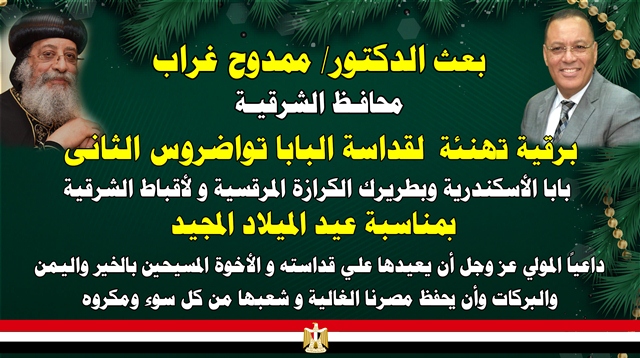 محافظ الشرقية يهنئ الأقباط بعيد الميلاد المجيد