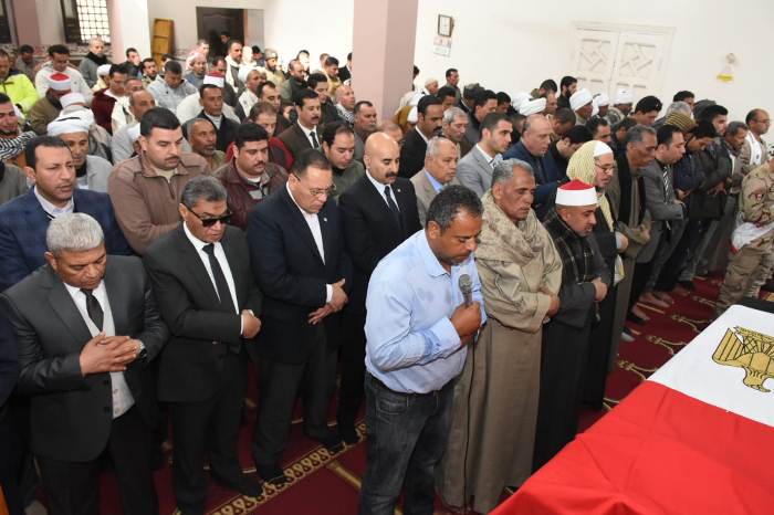 محافظ الشرقية ومديرالأمن يُشاركان فى تشييع جثمان شهيد الواجب والوطن إبن عزبة السلطان خضر بمركز كفر صقر