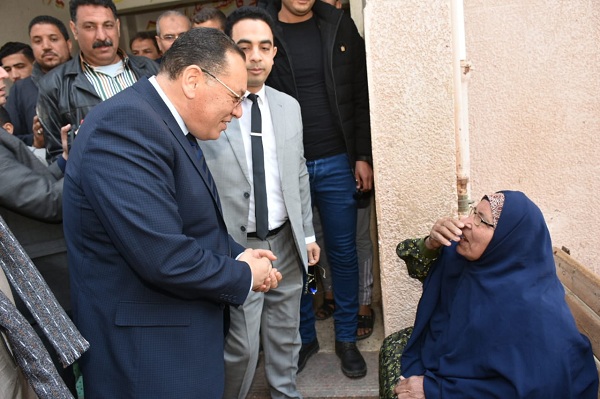 محافظ الشرقية يجري حواراً مع سيدة مسنه أثناء مشاركتها في الإستفتاء على التعديلات الدستورية