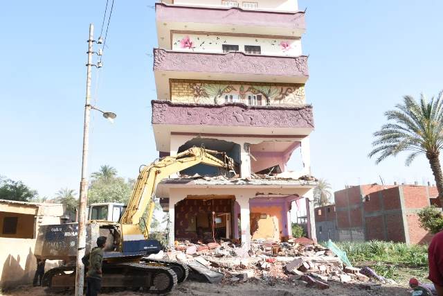 إزالة منزل من خمس طوابق بقريه السعادات ببلبيس فى حملة مكبرة لإزالة التعديات على الأراضي الزراعية و أراضي املاك الدولة قادها محافظ الشرقية ومساعد وزير الداخلية