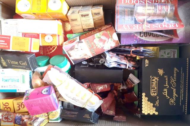 الدفترية ، وضبط أدوية ومنشطات مهربة غير مسجلة بوزارة الصحة ومجهولة