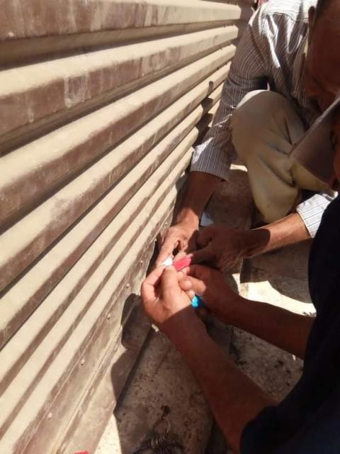 على شاب من ذوي الإحتياجات الخاصة بقرية كفر أبراش بمشتول السوق وتشميعه بالشمع الأحمر وفصل المرافق عنه لإدارته بدون ترخيص .
