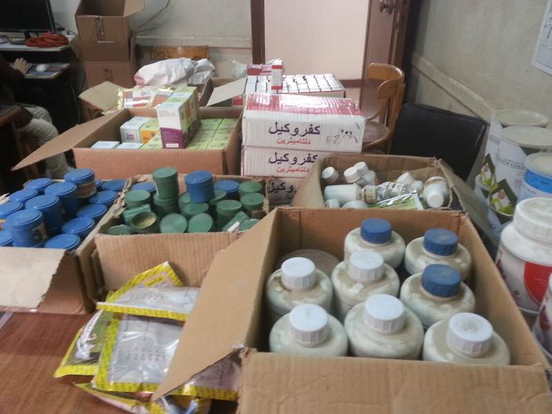 دواء بيطري منتهية الصلاحية و مجهولة المصدر و تم عمل المحاضر اللازمة