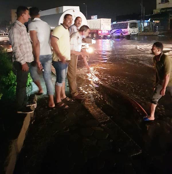 عمليات شفط مياه الأمطار بعدد من الطرق الرئيسية و الشوارع بمدينة بلبيس