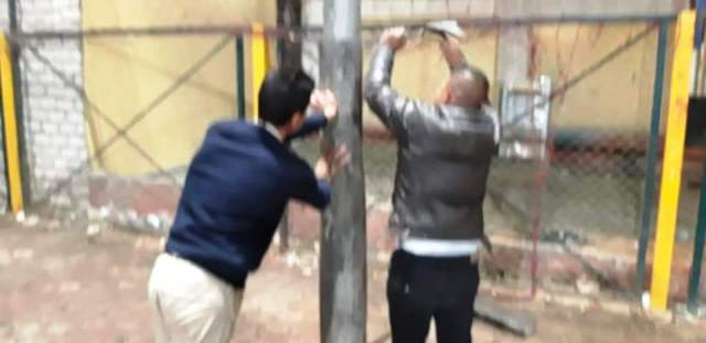 حفاظاً على أرواح المترددين علي مراكز الشباب تغطية أعمدة كهرباء الملاعب المنجلة بالبلاستيك فى الشرقية