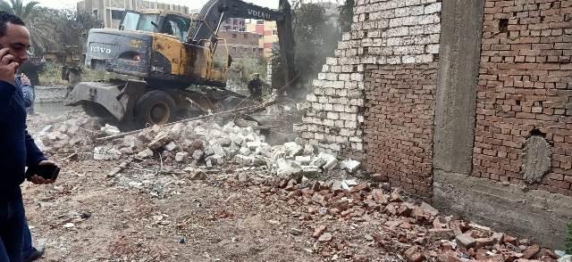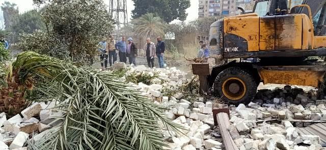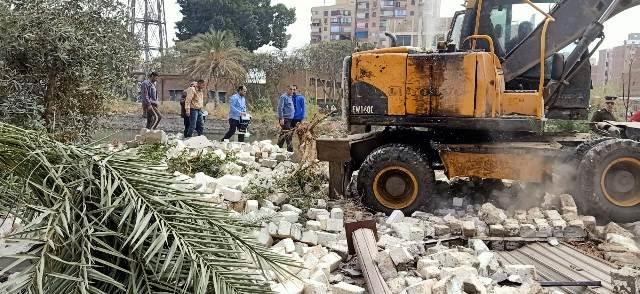 أو الأراضي الزراعية وذلك بالتنسيق مع الأجهزة الأمنية وإزالة المخالفة فى