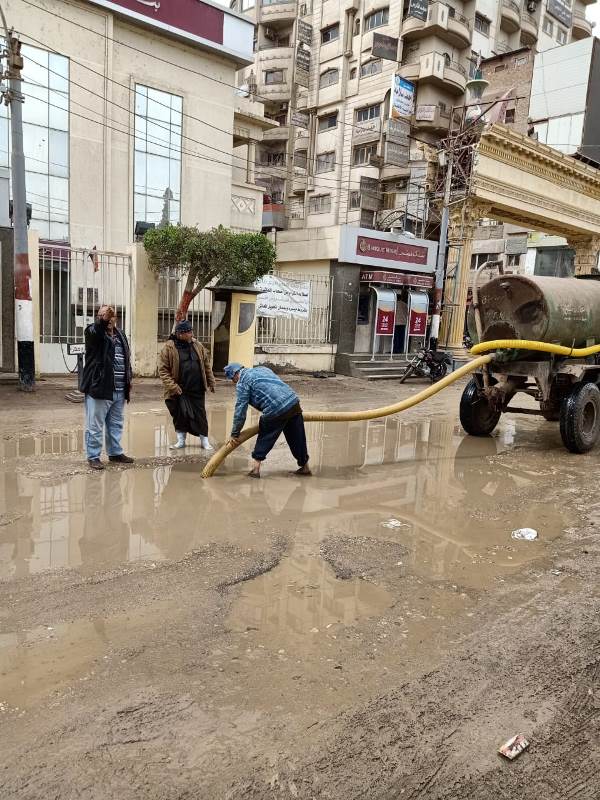 بمتابعه اعمال شفط تراكمات المياه الناتجه عن سقوط الامطار وازاله اثاره